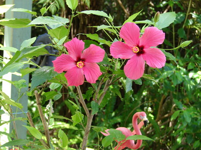 Last summer my pink miniature hibiscus started to outgrow its pot so I decided to risk planting it in the garden with the lemon tree and some other shrubs for company.